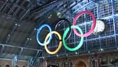 На вокзале Сент-Пэнкрас в Лондоне открыты гигантские олимпийские кольца.