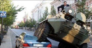 Глава литовской столицы Артурас Зуокас на бронетранспортере переехал автомобиль, припаркованный на полосе, предназначенной для велосипедов.