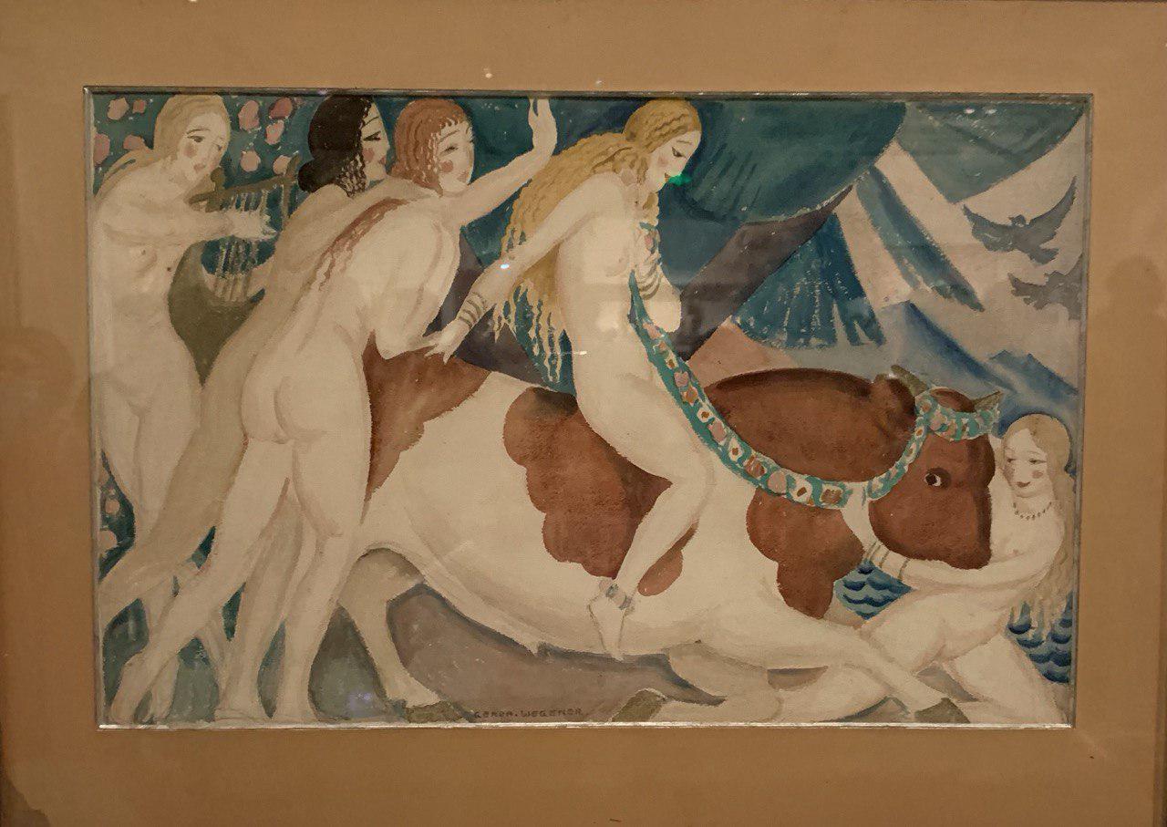 Небольшую работу Герды Вегенер «Похищение Европы», изображающую известный античный миф, населяют множество молодых прекрасных дев. Интересно, позировал ли для этой акварели муж Герды, Лили Эльбе, первый человек, сменивший пол.