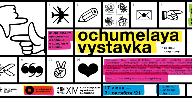 В 2021 году главным проектом Красноярской биеннале станет вклад приглашенной в качестве страны-гостя Германии. Гёте-Институт в Новосибирске совместно с Музейным центром «Площадь Мира» и куратором Тибо де Ройтером представляют «очумелую выставку», организованную в рамках Года Германии в России 2020/21 специально для XIV Красноярской музейной биеннале.