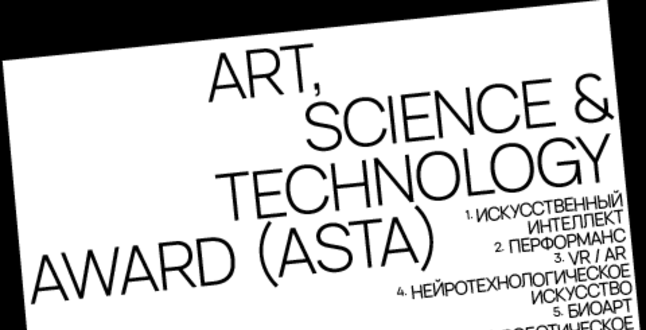 Завершен прием заявок на соискание премии Art, Science & Technology Award (ASTA) – первой в России награды в области научно-технологического искусства среди молодых художников, ученых, инженеров, создающих междисциплинарные арт-проекты. На рассмотрение жюри прислано больше 170 заявок со всей страны от студентов и выпускников ведущих вузов.