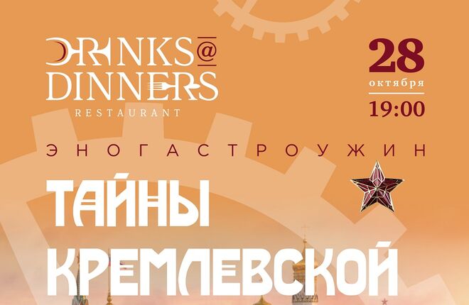 В пятницу 28 октября ресторан Drinks@Dinners обещает раскрыть гостям вкусные секреты государственной важности.>