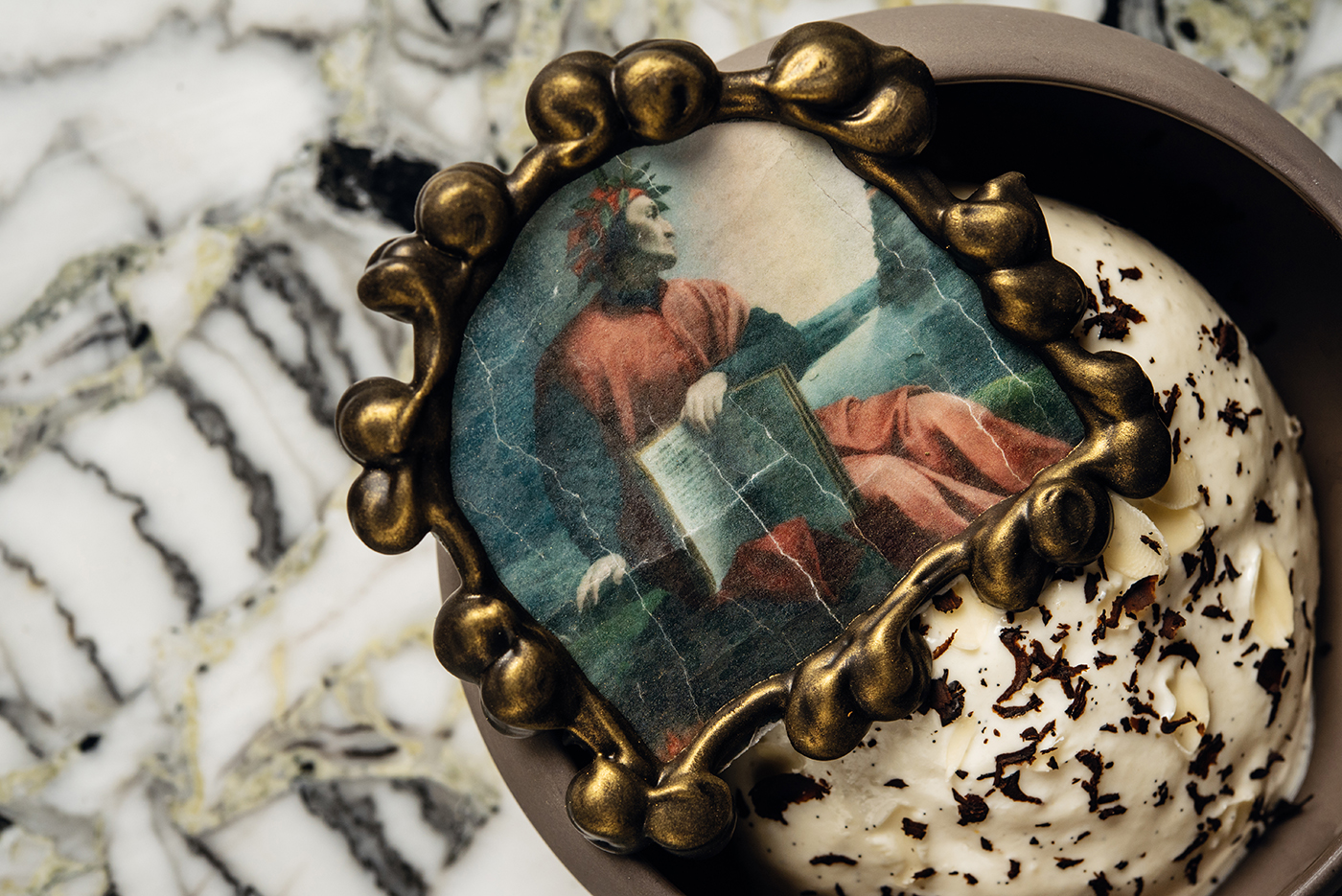 Специально к приезду полотна в Sartoria Lamberti запустили в поддержку выставки десерт Панфорте со вкусами Средневековья и портретом Данте Алигьери. Традиционно сиенский панфорте представляет собой плотное тесто с обилием орехов и сухофруктов, его первое упоминание относят к 14 веку. В версии 2022: миндальный бисквит с изюмом, выпаренный инжир, эспума из миндаля и жженый миндаль. Портрет Данте выполнен из вафельной бумаги и обрамлён шоколадным багетом.