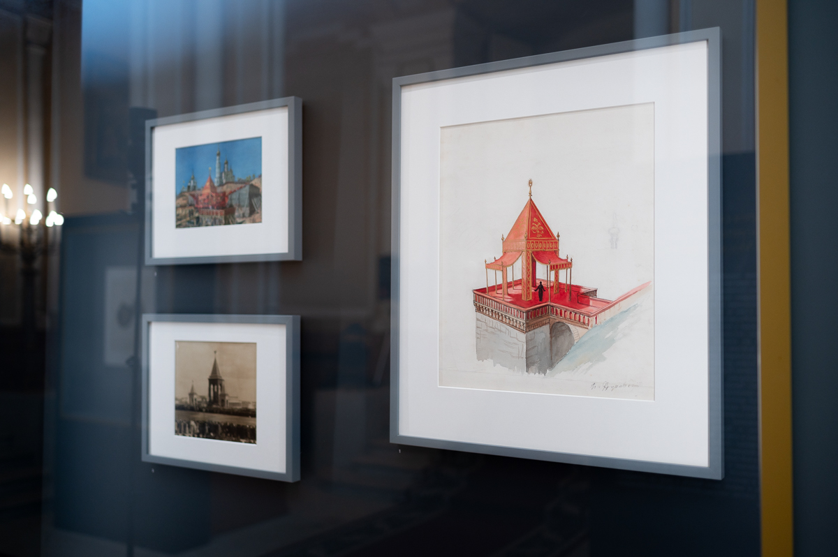 В экспозиции можно увидеть различные варианты композиции, которые демонстрируют, как первоначальные идеи повлияли на конечный результат: авторами реализованного проекта стали художник П. В. Жуковский, инженер-архитектор Н. В. Султанов и скульптор А. М. Опекушин.