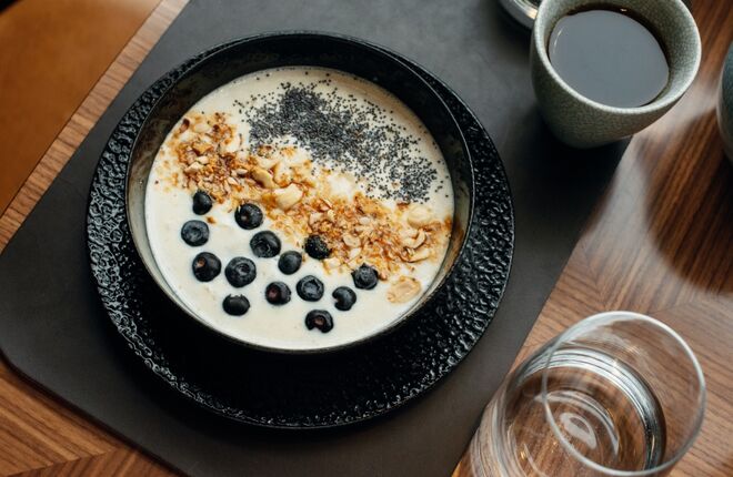Для любителей сладкого на завтрак есть овсяная каша с карамелью, маком и свежими ягодами, которую сварят на обычном или растительном молоке по желанию гостя (230 руб.). Фаворитом гостей уже стали домашние оладьи с кремом из сгущенки (270 руб.).
