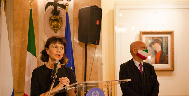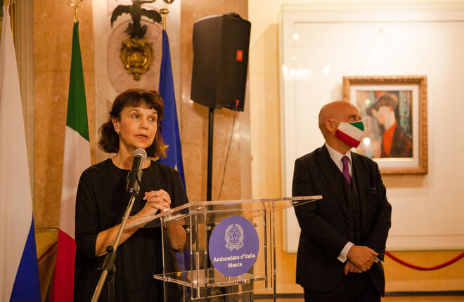 Вечер в посольстве прошел в преддверии открытия выставки «Свободное искусство. Итальянский футуризм из коллекции Джанни Маттиоли» в Государственном музее изобразительных искусств имени А.С. Пушкина.