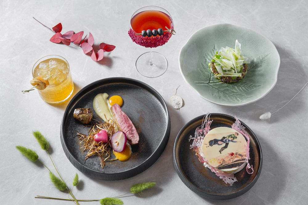 Романтическое меню на двоих состоит из трех разных сетов блюд для него и для нее (так что придется делиться и пробовать из тарелки второй половинки сочного ягненка или нежный лосось). Предложение включает воду, чай, кофе и два бокала розового игристого вина.