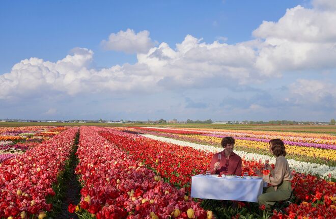 Третий сценарий — Tulip Tableaux — больше подойдет для влюбленных: гостей доставят на автомобиле к полю тюльпанов, на котором, прямо среди ярких цветов, батлер отеля организует камерный пикник. Гости перекусят блюдами местной кухни, например, легким салатом с омаром, артишоками, грейпфрутом, помидорами и спаржей; голландской икрой с блинчиками и крем-фреш; а также десертом, напоминающим тюльпан, со слоеной композицией из груши, бузины, йогурта и пряного печенья Speculaas.
