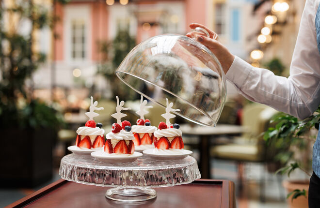 К столетию десерта «Павлова» шеф-кондитер «Гранд Отеля Европа» Дмитрий Шибков представил авторскую интерпретацию легендарного пирожного. Каждый день «Павлова» появляется на сервировочной тележке в кафе «Мезонин» в атриуме отеля.