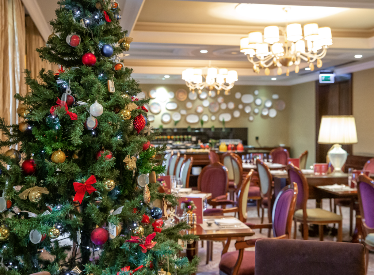 31 декабря Новый год гости отеля будут встречать в зале ресторана «Европа» с витражами. На стенах оживут картины в технике эбру художника Ольги Кауровой по мотивам новогодних сказок «Морозко», «Щелкунчик» и «12 месяцев». В лобби будет звучать джаз, а 1 января шумное празднование уступает место бранчу с икрой и шампанским.