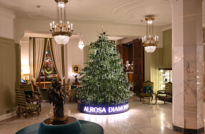 Гостей «Астории» в Петербурге ждет празднично украшенный отель, ежегодная ярмарка и торжественная программа. Главную елку отеля «Астория» в этом году создала компания ALROSA Diamonds. Живая пихта ростом больше четырех метров высится до потолка с исторической лепниной. Елка останется в гостиной «Ротонда» до Старого Нового года 14 января.