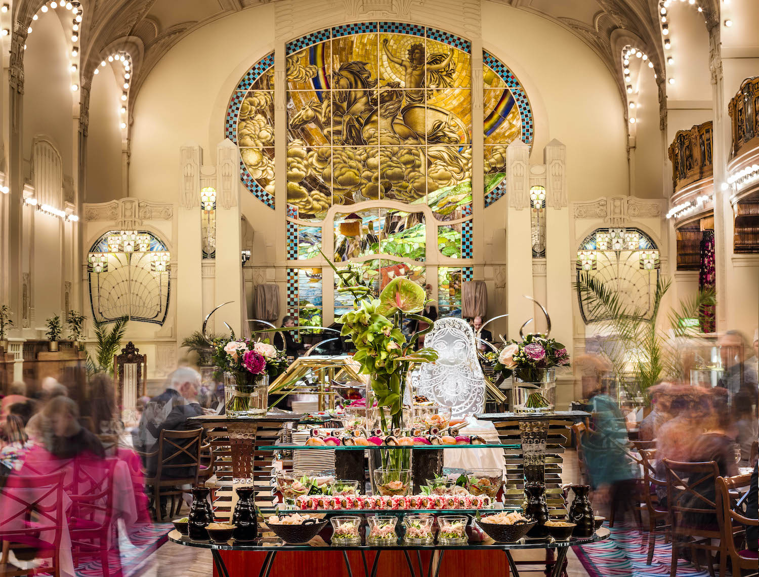 А чего только стоят интерьеры легендарного ресторана «Европа», одного из лучших образцов стиля ар-нуво, с его цветными витражами и особой почти сакральной атмосферой. Стену зала украшает панно «Аполлон на колеснице» и изящная деревянная резьба в стиле модерн. Ресторан создавался по проекту архитектора Карла Маккензена и был открыт в 1905 году.