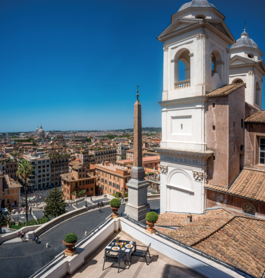 Hassler Roma, возвышающийся над Испанской лестницей, – самый фотографируемый отель Рима.