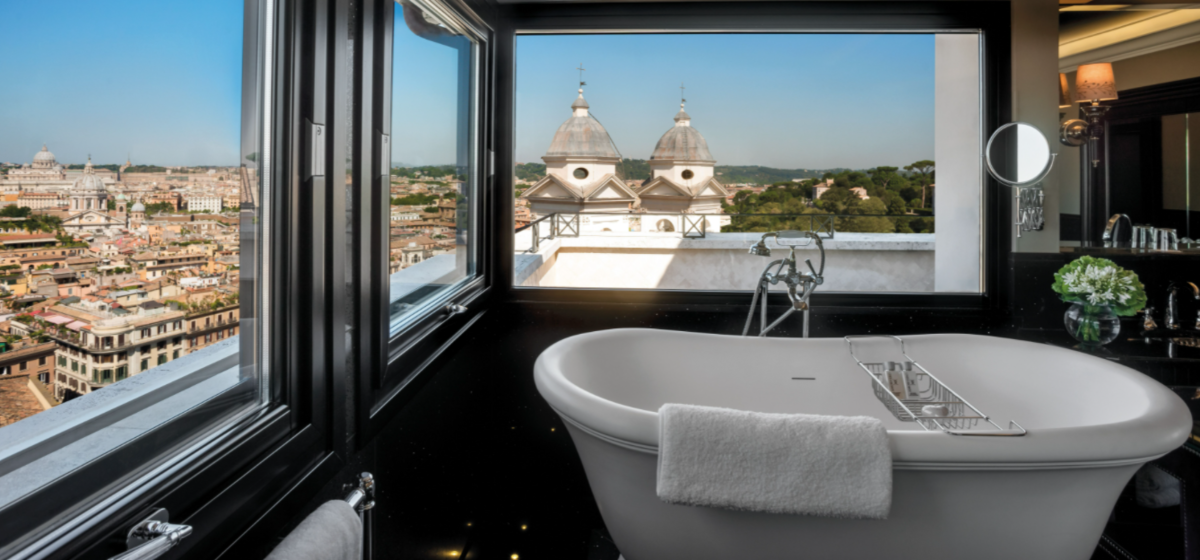 И только у гостей Hassler Roma есть возможность сделать яркие снимки на фоне панорамы города, открывающейся из самого отеля. Чтобы получить самые инстаграмные кадры, необходимо поселиться на восьмом этаже отеля в люксе Penthouse Suite. Этот номер, спроектированный по замыслу владельца Hassler Roma, Роберто Э. Вирта, поражает своим дизайном и видами на сады Виллы Боргезе и Виллу Медичи, Собор Святого Петра и Пантеон.