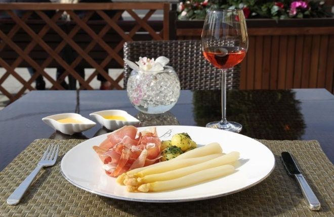 Белую спаржу можно попробовать в июне в кафе «Кранцлер», на летней террасе и при заказе в номер.
