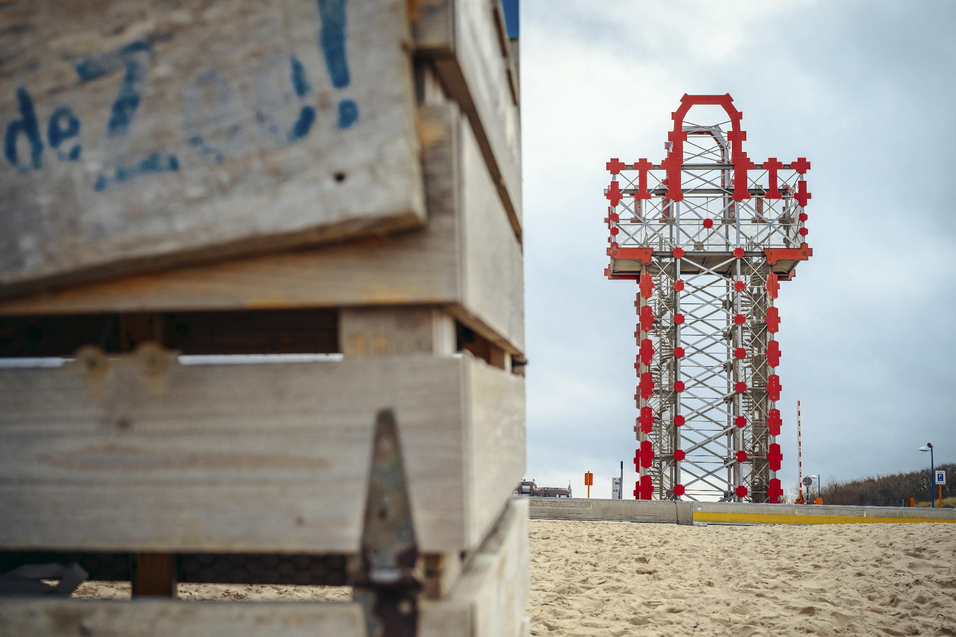 Эта башня из пляжных домиков приветствует посетителей и жителей при въезде в город Кнокке-Хейст. Инсталляция выглядит так, как будто шторм поднял кабинки в воздух и свалил их вместе. Эти строения имеют такую же долгую историю, как туризм на бельгийском побережье. Изначально они использовались женщинами как кабинки для переодевания. Арт-объект символизирует своеобразный тотем, представляющий все бельгийское побережье как памятник пляжной культуры.