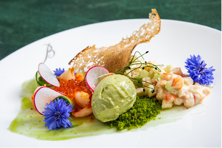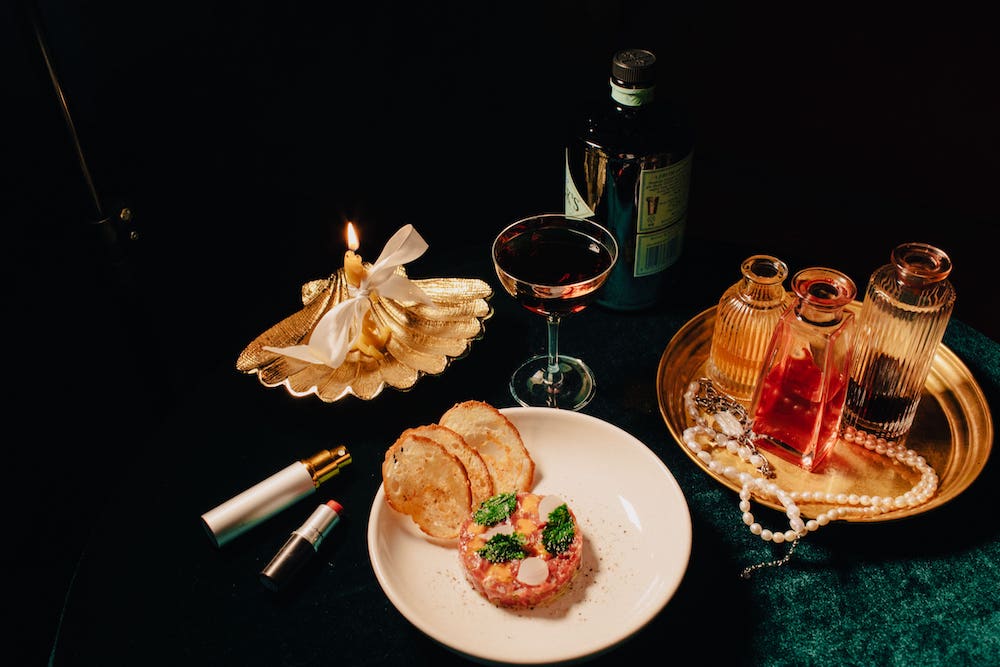 Шеф-повар Денис Соболев создал сет из пяти курсов. В меню — блюда с камчатским крабом, икрой осетра, фуа-гра, гребешками. На десерт подадут торт в форме сердца с начинкой из черешни.