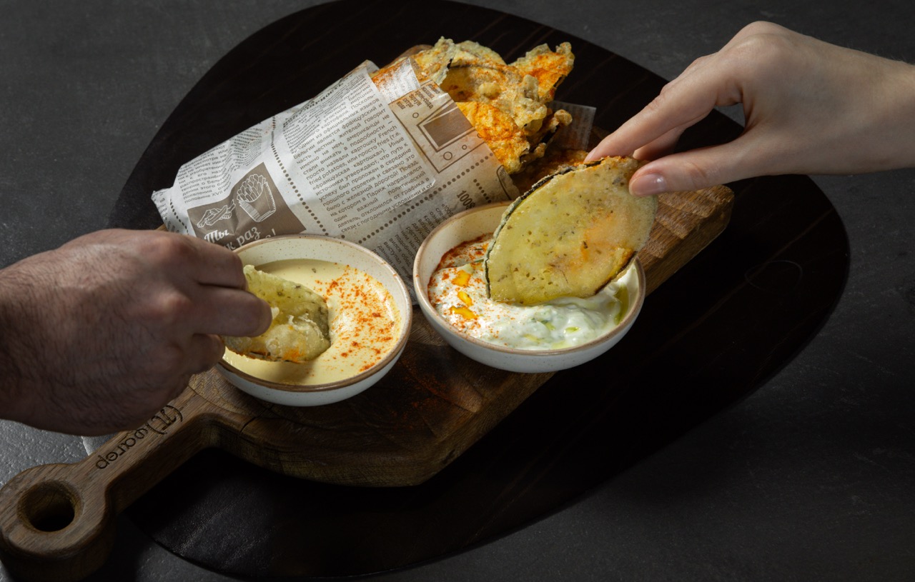 Греческий ресторан предлагает влюбленным в этот день совместно съесть чипсы из цукини и баклажана, специально приготовленные к празднику шеф-поваром Дамиром Хайретдиновым, и побить посуду. Не пугайтесь, ссориться не придется. Это яркий и веселый греческий обычай: тарелки разбивают, когда публике нравится, как кто-то танцует или поет, таким образом выражают свое восхищение.