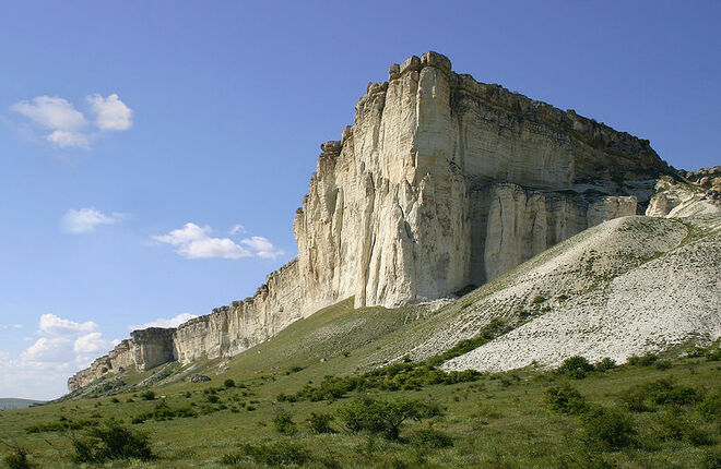 Белая скала или по-тюркски Ак-Кая - это не самый высокий горный пик на Крымском полуострове, но возвышается он более чем на 100 метров над бескрайними степными просторами Белогорского района. Ак-Кая ослепляет белизной и врезается в долину, как бушприт древнего фрегата, многие столетия приковывает взгляды туристов и путешественников. Тысячелетиями несломленный дух гор, дикая и величественная красота скалы, поражает своей необузданной мощью, чистотой и яркостью.