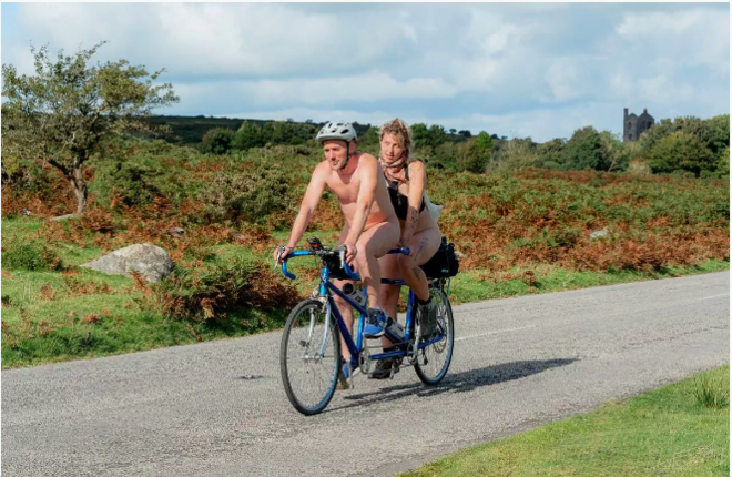36-летний Нил Кокс и его 25-летняя подруга Джей Антик совершили велосипедное путешествие на юго-западе Англии. И все бы ничего, но пара сделала это совершенно обнаженной.>