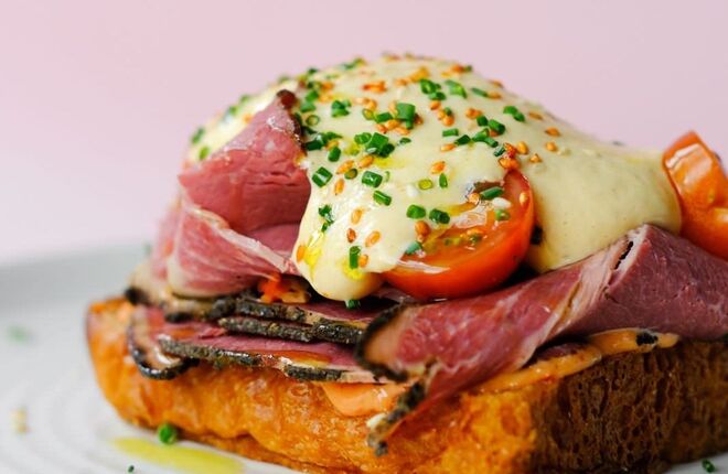 Можно попробовать круассан с камчатским крабом, авокадо, тобико и пармезаном (790 руб.) или тост с камчатским крабом и яйцом пашот (790 руб.).
