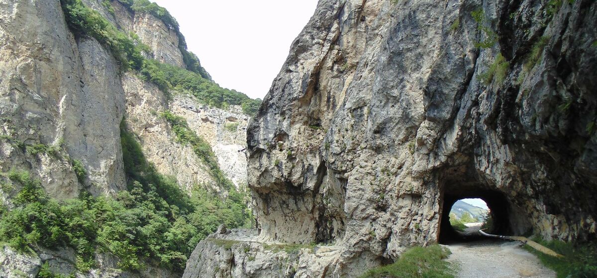 Эти тоннели были построены в целях безопасности при передвижении. Они предназначены для объезда опасных участков дороги по краю ущелья. Их здесь прорублено два: длинный и короткий. В длинном тоннеле есть боковые ответвления, которые выходят на старую Балкарскую дорогу, смотрятся весьма загадочно. Акустика в тоннелях просто ошеломляет, придает необычному месту небывалую таинственность.