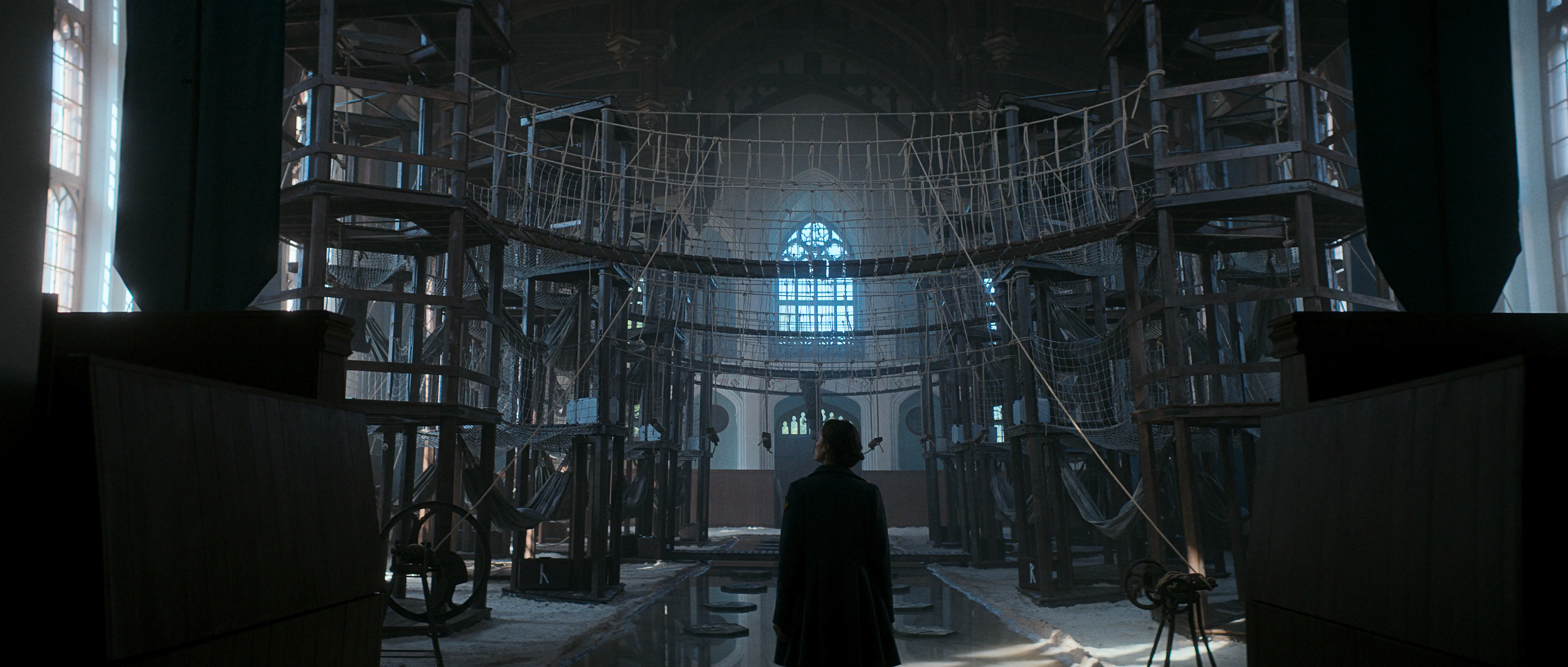 Одну из главных локаций, замок Нойманна, как это часто бывает в кино, изобразили сразу несколько строений. Экстерьер замка, как и горы вокруг, дорисовывали с помощью компьютерной графики. Для съемок использовали двор дворцовых конюшен Бенуа в Петергофе, построенный в середине XIX века, при этом историческому комплексу, конечно, нельзя было никак навредить. Тем сложнее было возвести внутри конюшен многофункциональный зал, где по сюжету занимаются и спят подопечные Нойманна. На стены и к потолку художники из съемочной команды ничего не крепили, все конструкции были самонесущие.