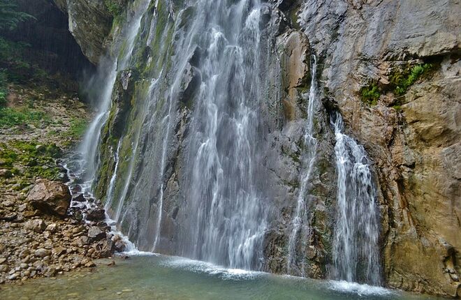Приехали жарким июльским летом в Абхазию (допустим в Гагру), на пляже +35, вода как парное молоко, плавки, зонтик и в тапочках на пляж. Но учтите, Гегский водопад расположен высоко в горах, а температура его воды не поднимается выше +8 в самые жаркие месяцы лета. Так что, если хотите подойти к подножию Зоу ближе 50 метров, возьмите с собой ветровку и спортивные штаны.