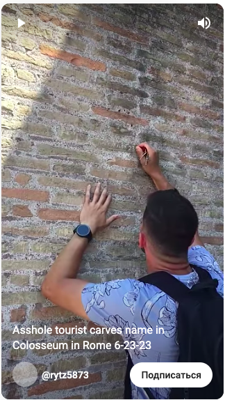 Видео было опубликовано на Reddit с подписью: «Турист вырезал имя в Колизее в Риме».