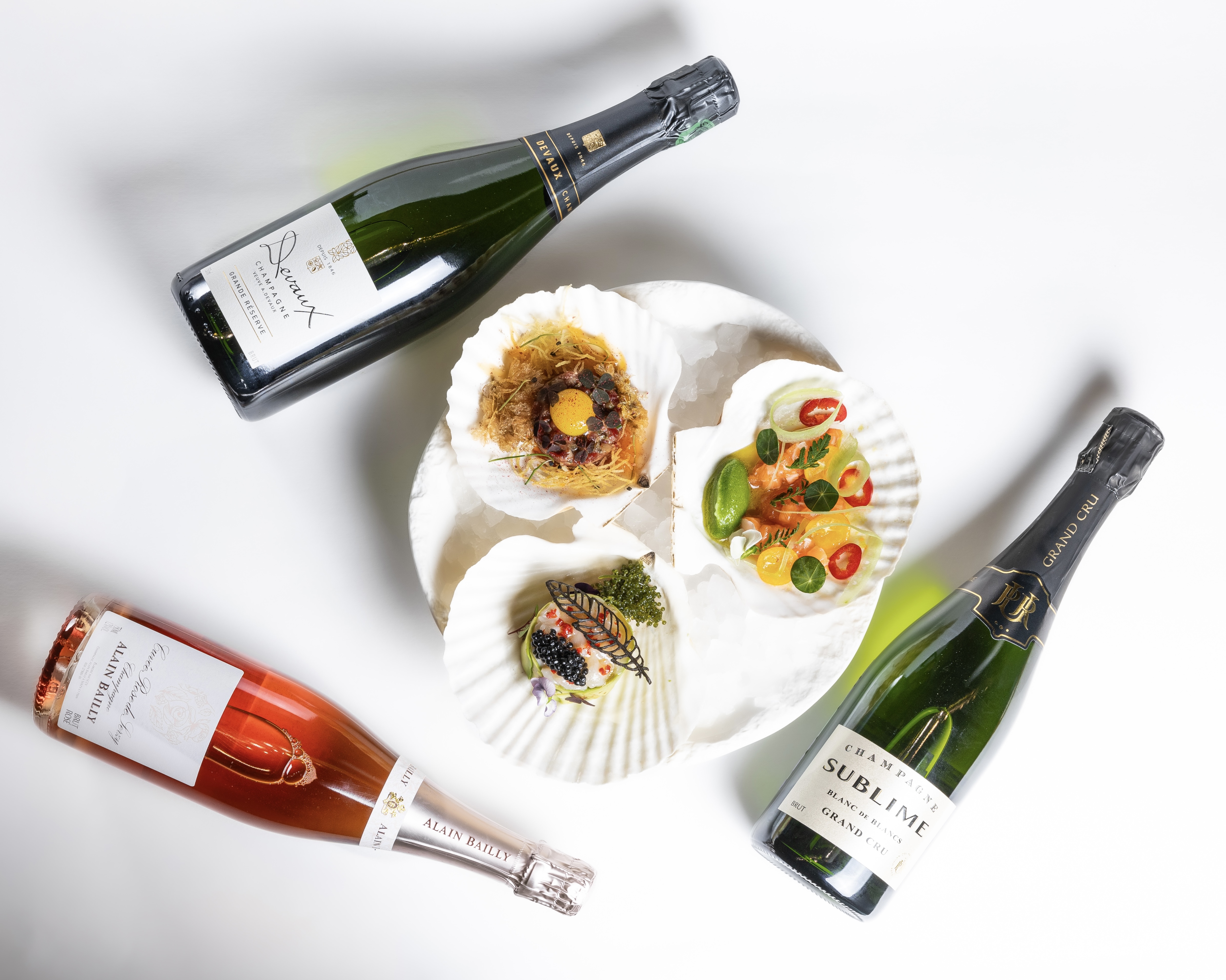 В Wine&Crab на Никольской разработали авторский сет из трех видов шампанского и трех тартаров. Попробовать его можно будет с 25 по 27 октября. Шампанское Grande Réserve Blanc de Noirs Brut от Veuve A сочетается с тартаром из гребешка с чёрной икрой и морским виноградом, брют Cuvée Rose de Serzy от Alain Bailly – с тартаром из лосося с кумкватом и сорбетом из эстрагона, а Sublime Grand Cru Blanc de Blancs Brut от Le Mesnil — с тартаром из говядины с джонджоли и картофелем-пай.