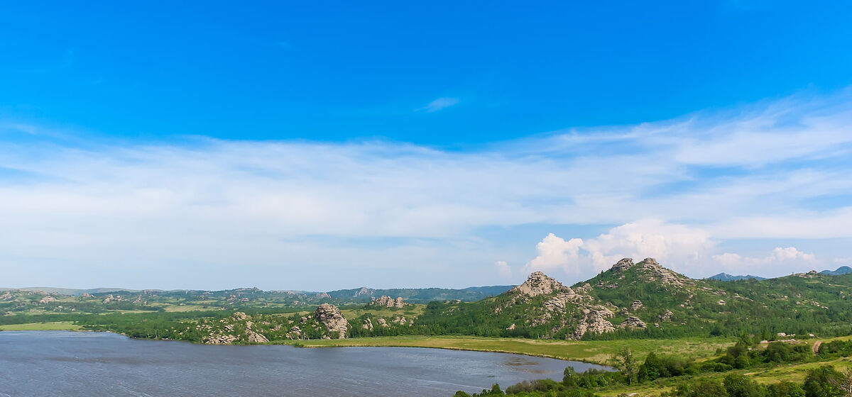 Утесы в окрестностях естественного водохранилища образованы тонкими пластами гранита, состоящего из серого кварца, полевого шпата красноватого и белого оттенков и кристаллов слюды черного и зеленого цвета. На восточном берегу возвышаются скалы, образованные из альбита, сероватых кварцевых пород, слоистых тонких полос черной слюды, придающие граниту восхитительный рисунок, напоминающий арабскую вязь.