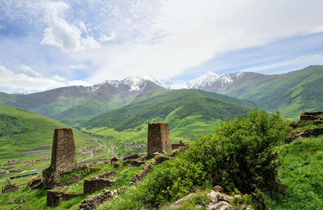 Одна из начальных точек на маршруте — селение Дзивгис. Место интересно своими живописными природными замками. Среди прочих достопримечательностей можно выделить популярный склеп «Город мертвых». Это культовое древнее здание. Для того, чтобы увидеть древние оборонительные сооружения, необходимо зайти на гору Кариу-хох. Для того, чтобы увидеть главное укрепление, необходимо подняться наверх.
