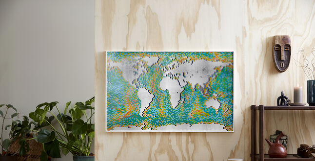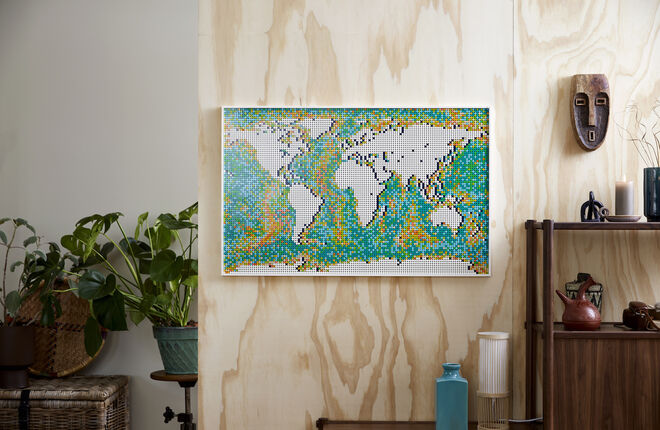 Набор выйдет в линейке LEGO Art и позволяет воссоздать в формате настенного панно карту мира с помощью новых 2D деталей LEGO. Набор будет состоять из 11 695 элементов, став самым большим когда-либо выпущенным компанией LEGO Group. Размер собранной карты 104 см х 65 см.