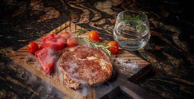 Филе-миньон со скидкой стоит 1700 рублей, мачете – 1600 рублей, стейк рибай из мраморной говядины – 2100 рублей, а стриплойн – 1450 рублей.