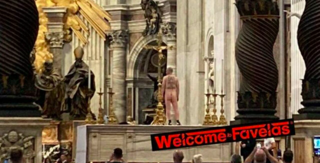 В качестве протеста против специальной военной операции на Украине, мужчина разделся на алтаре собора Святого Петра в Ватикане.>