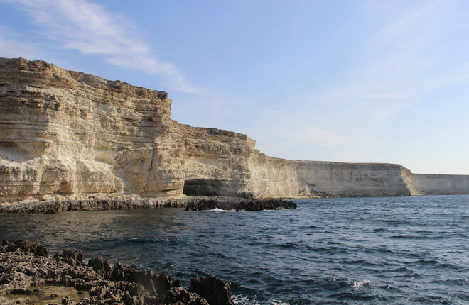 Мыс Тарханкут — юго-западная оконечность Крымского полуострова. Заповедная земля, сохранившая первозданную природную красоту. Здесь гряда древних скал с причудливыми арками и пещерами и сквозными гротами высится над бескрайними просторами Черного моря. Живописные бухты с белоснежными пляжами с кристальной водой и пьянящим воздухом морского бриза ежегодно привлекают множество туристов и отдыхающих.