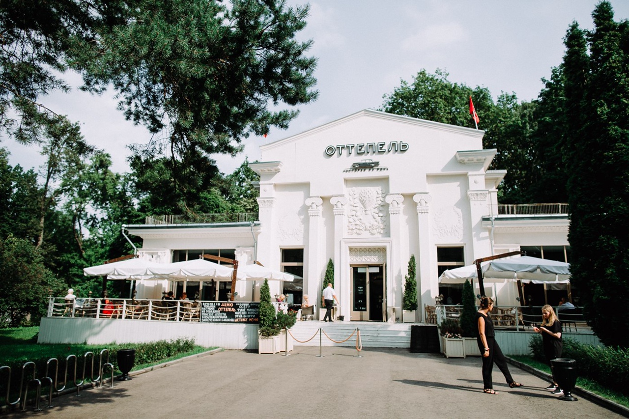 Веранда ресторана «Оттепель» окружении зелени парка ВДНХ – отличный выбор для расслабленного обеда на выходных.