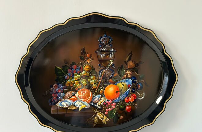 Работа над росписью этих подносов стала для жостовских художников погружением в атмосферу фламандского натюрморта, где каждый элемент имеет особый смысл.