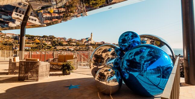 В лигурийском The Mall Sanremo Рождество будет современным благодаря инсталляциям в оттенке металлик и мультисенсорным элементам. Прямо перед входом гостей встречает дерево, украшенное голубыми и серебряными хромированными сферами с логотипом The Mall.