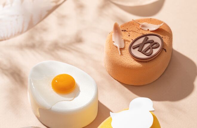 В основе яйца «Весна Священная» – арахисовый бисквит в сочетании с крем-брюле, кофейным муссом и кремом дульче