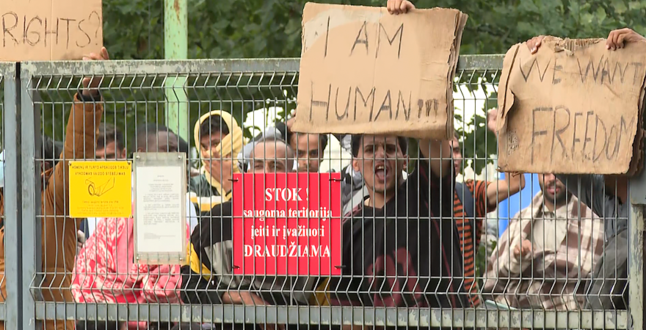 В палаточном лагере на границе Литвы, в который поселили тех, кто незаконно пересек границу со стороны Белоруссии, начались бунты.>