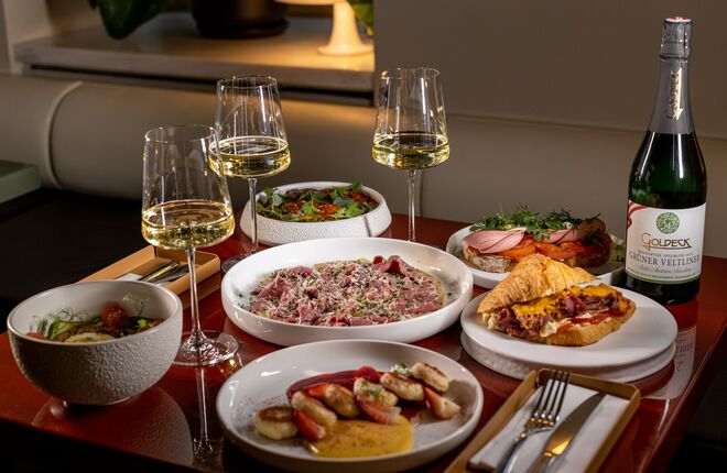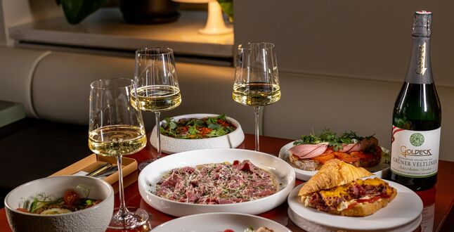 С 12:00 до 16:00 при заказе блюд из меню бранча гостей угощают австрийским зектом Goldeck Gruner Veltliner Sekt Trocken, причем в неограниченном количестве. В меню – блюда из яиц, брутальный бутер с колбасой, тыквенный панкейк, лепешки роли и брускетт, пирог с говядиной и грибами, куриная грудка в сырном карри с бататом, сырники, чуррос с корицей, круассан с пралине и десерт «батат-брюле».