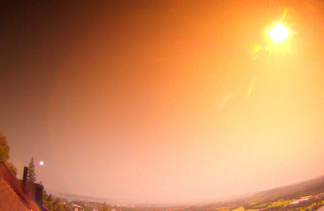 Метеорит появился в 01:08:47 ночью 25 июля и был виден около 5 секунд. На картинке ниже показан огненный шар, видимый из Осло, пишет Norskmeteornettverk.