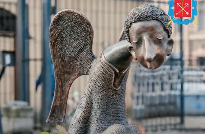 На набережной реки Карповка установили монумент «Печальный ангел» в память о врачах, погибших от коронавируса.