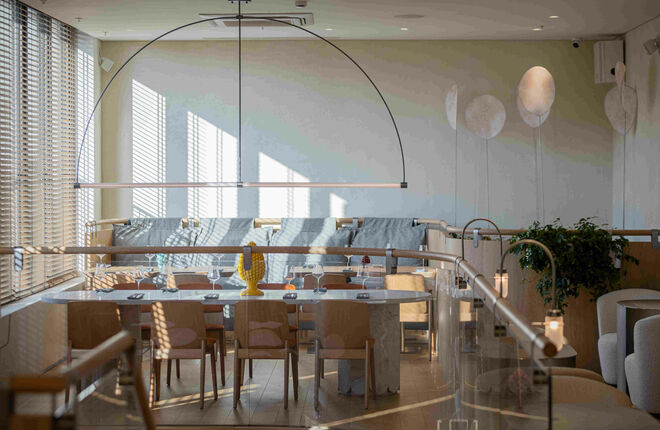 На Петроградской стороне, в современном кластере One Trinity Place, открылся итальянский ресторан Noto. Из окон открывается вид на Малую Невку и Лазаревский мост.