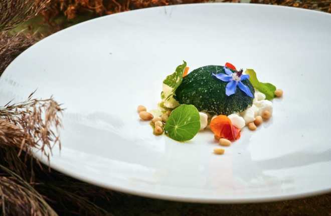 За ним последует седло ягнёнка с крапивой и снытью в сопровождении пюре из белых бобов и топинамбура. К ягнёнку предложат авторскую настойку от бренд-амбассадора Александра Глазунова. Чтобы освежить рецепторы, подадут сорбе из домашнего ржаного кваса. В конце ужина принесут «Гречневый наполеон» – его делают по технологии классического наполеона, но добавляют гречневое молоко и мед, попкорн из гречки и семена конопли.