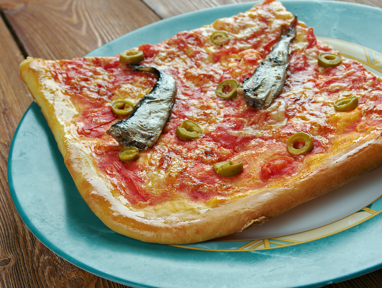 Эту пиццу часто можно встретить в закусочных Сан-Ремо. Раньше её готовили с сардинами – отсюда и название. Тесто для Сарденайры напоминает фокаччу.