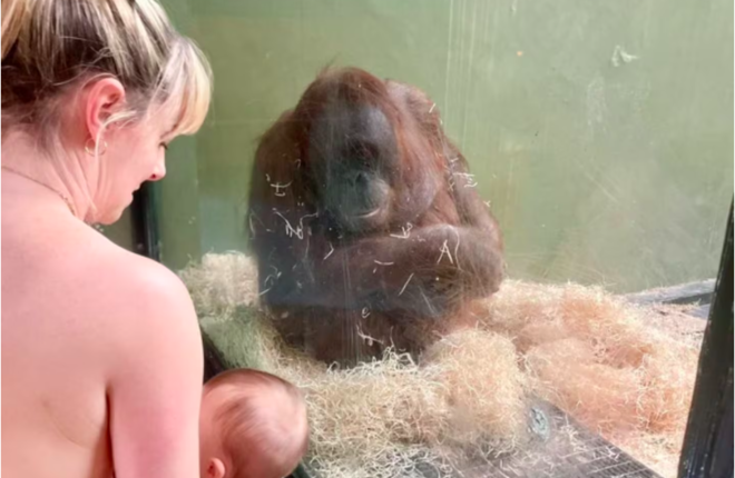 Дублинский зоопарк провел интересный эксперимент и обратился за помощью к кормящим матерям, чтобы помочь самке орангутана наладить связь со своим новорожденным.>