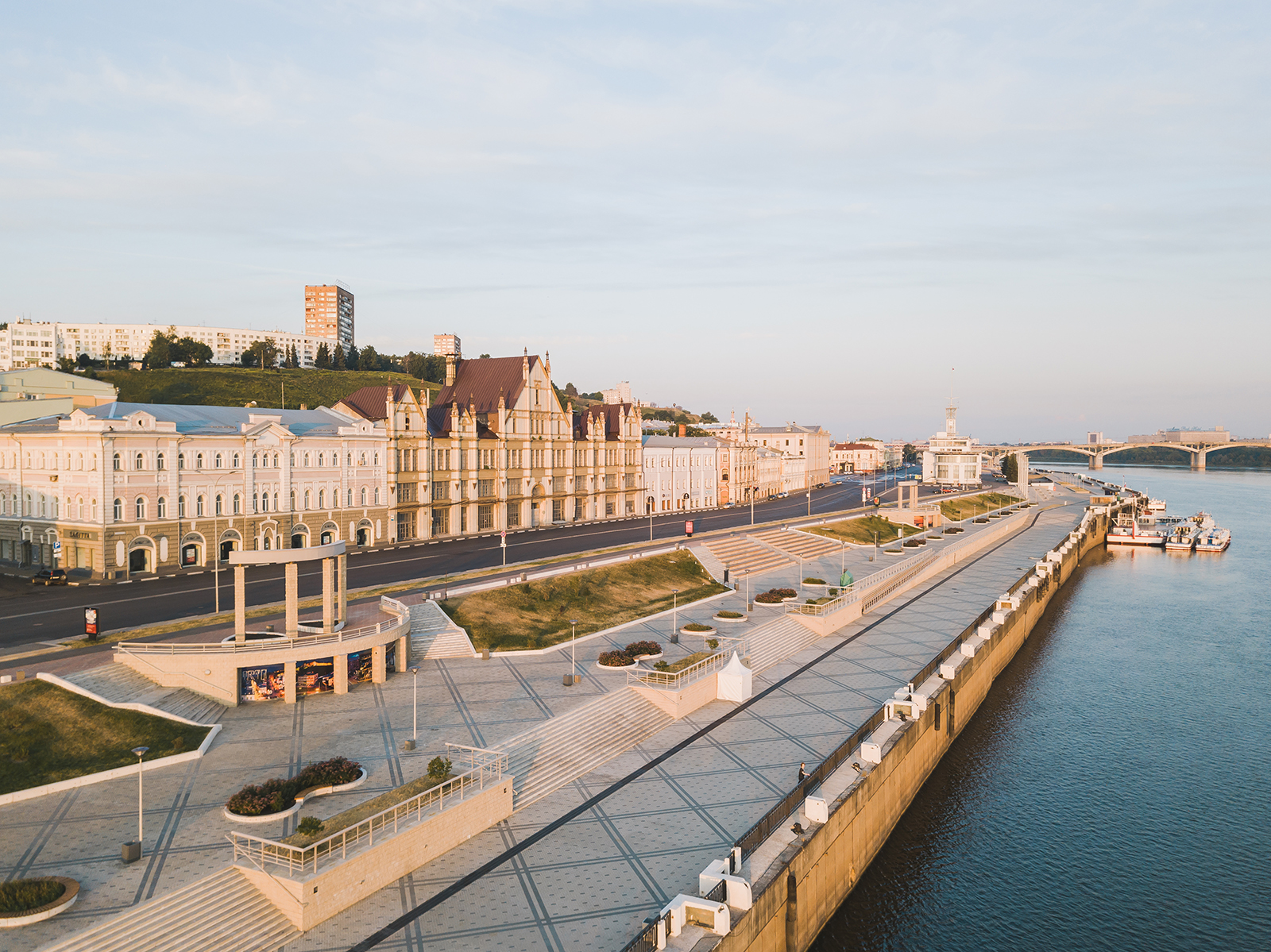 Благодаря расположению на крутых берегах Оки и Волги вечером Нижний Новгород превращается в идеальный зрительный зал для просмотра зрелищных закатов. Каждые выходные этим летом к закатам прибавляется выступление музыкальной звезды на набережной и салют.