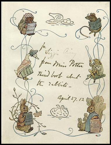 Известно, что один из ее самых известных персонажей, Кролик Питер, родился в небольшом шотландском городке Дункелд, в доме, где семья Поттеров жила в 1893 году. Отсюда Беатрис отправила сынишке своей бывшей гувернантки несколько рисунков со словами: «Мой дорогой Ноэль, не знаю, что бы тебе написать, — лучше расскажу тебе сказку о маленьких кроликах, которых звали Флопси, Мопси, Белохвостик и Питер Кролик...»
